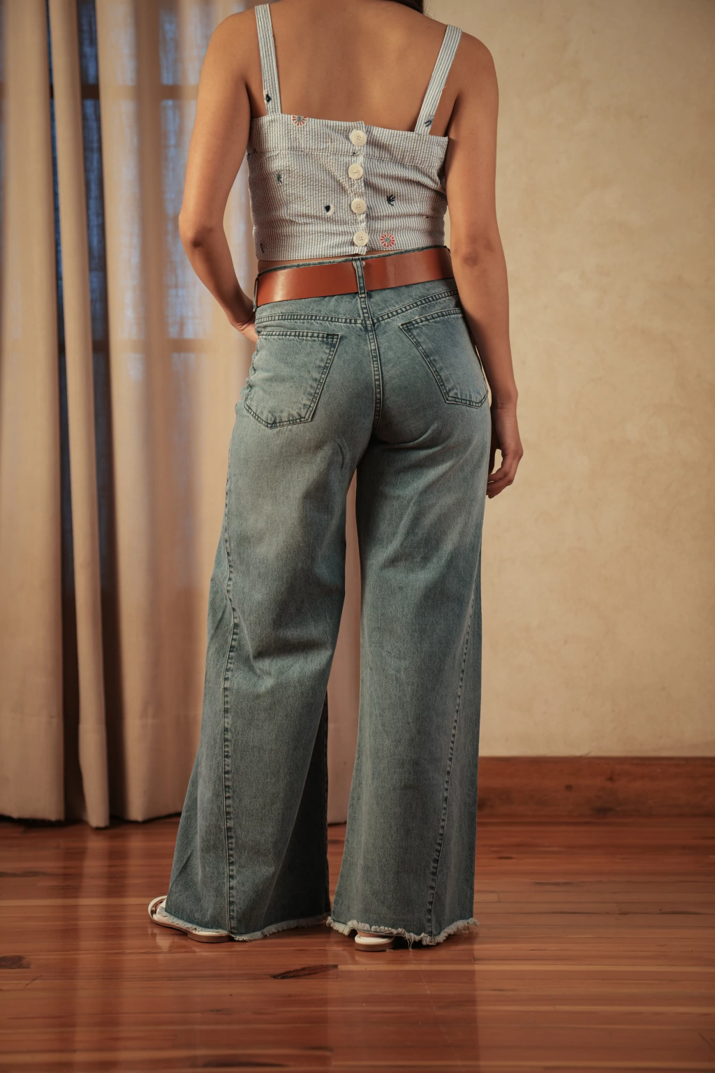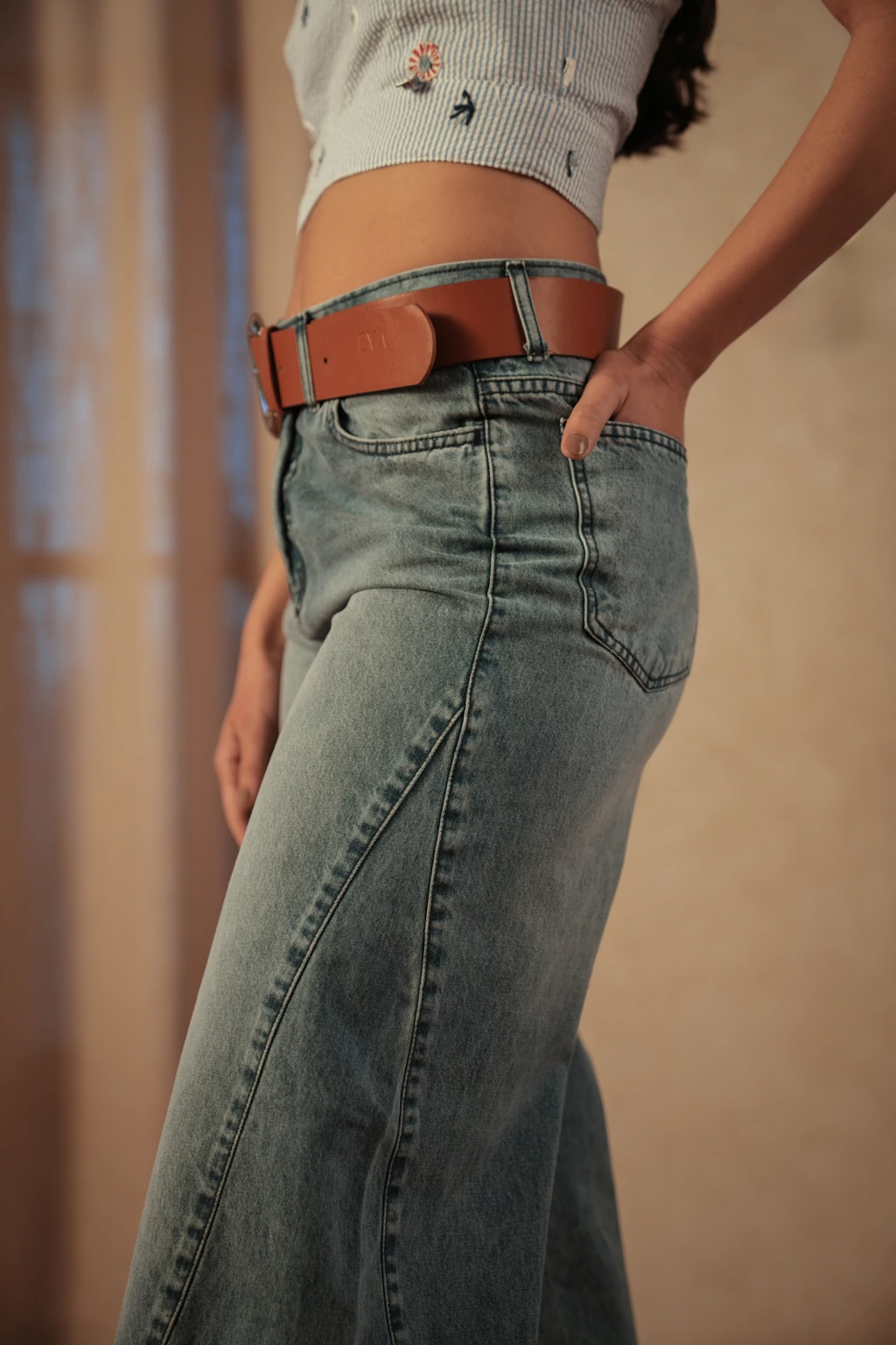 Descubrí este pantalón de jean 100% algodón, confeccionado con un corte clásico de cinco bolsillos que combina estilo y funcionalidad. Su particularidad reside en la quilla lateral, que aporta amplitud y movimiento a la botamanga, creando una silueta moderna y sofisticada.