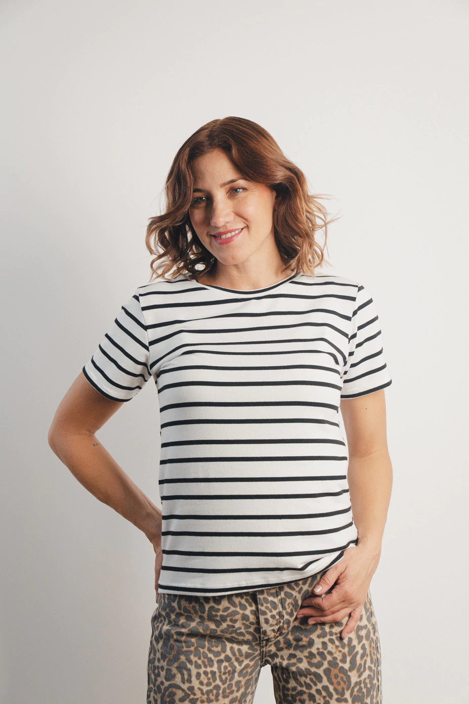 REMERAS QUE DESTACAN Descubre la REMERA LUNA RAYAS, una opción perfecta para quienes buscan un estilo fresco y cómodo. Con un escote redondo y mangas cortas, esta remera es ideal para el uso diario o para combinar en ocasiones especiales. Su diseño a rayas aporta un toque moderno y versátil, permitiéndote lucir siempre a la moda.