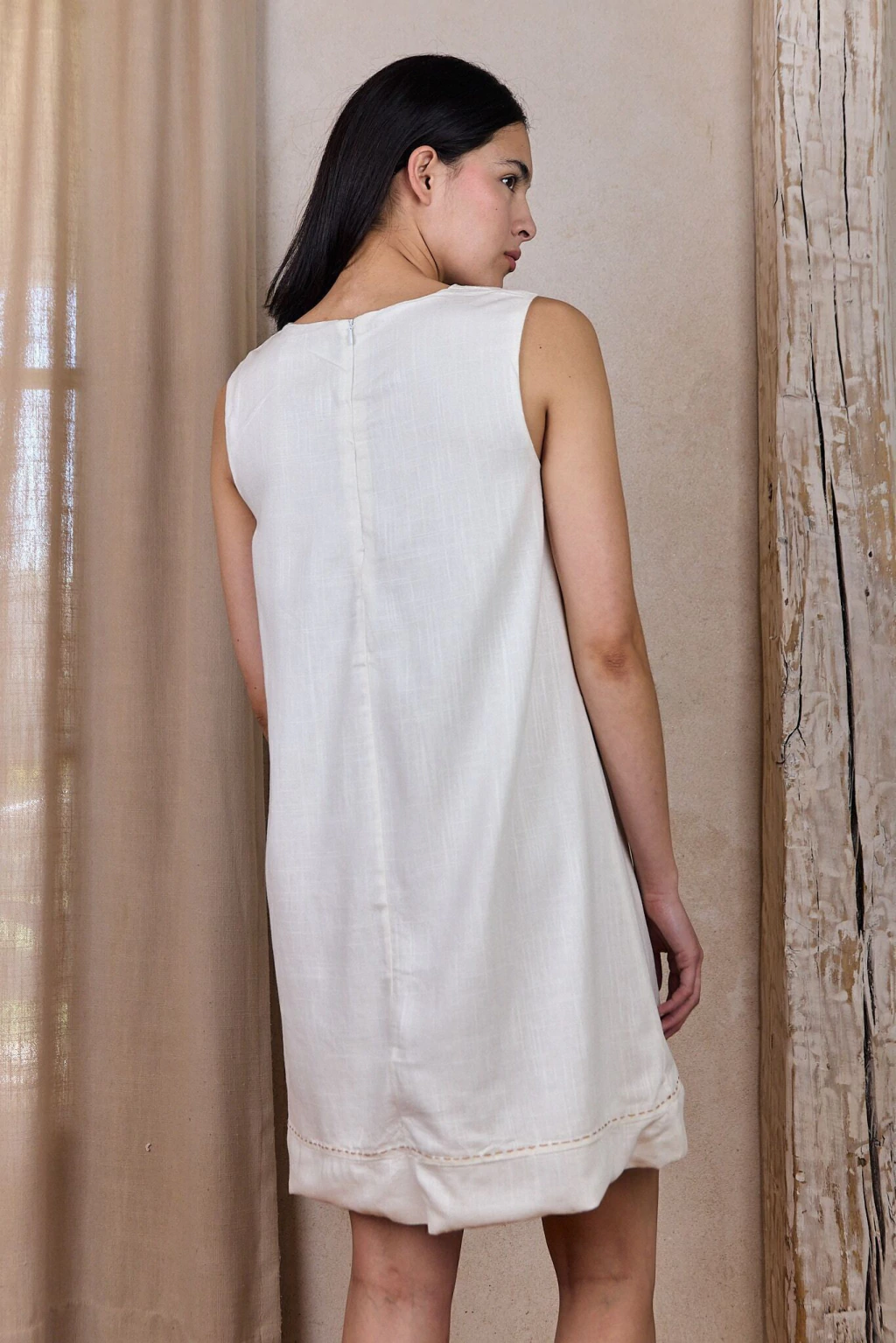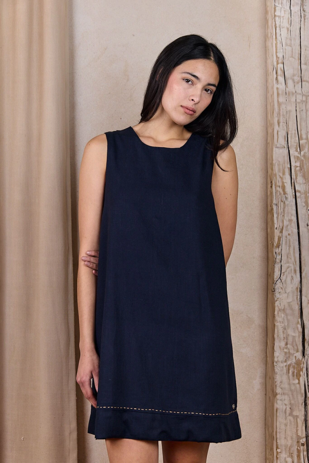 Descubrí el vestido de lino tipo Jackie, con un diseño suelto hasta la rodilla que permite libertad de movimiento. Presenta un delicado pespunte en el ruedo inferior y un cierre en la espalda para un buen ajuste. Su musculosa integrada lo convierte en una prenda fresca y versátil, ideal para diversas ocasiones y climas cálidos.